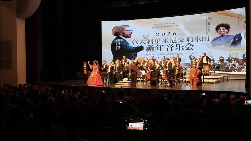 元旦之夜,意大利里米尼交响乐团在上海商城剧院奏响经典旋律。艺术家与申城乐迷在音乐中共迎新年,掌声与喝彩声将现场气氛一次次推向高潮。人民网记者 沐一帆摄