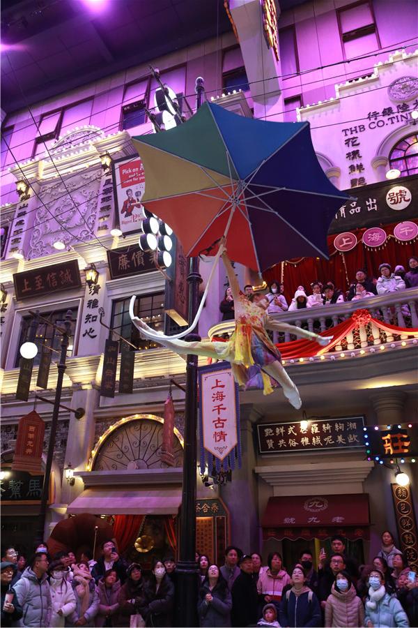 元旦期间,上海千古情景区沉浸式演出连番上演,游客如织。人民网记者 龚莎摄