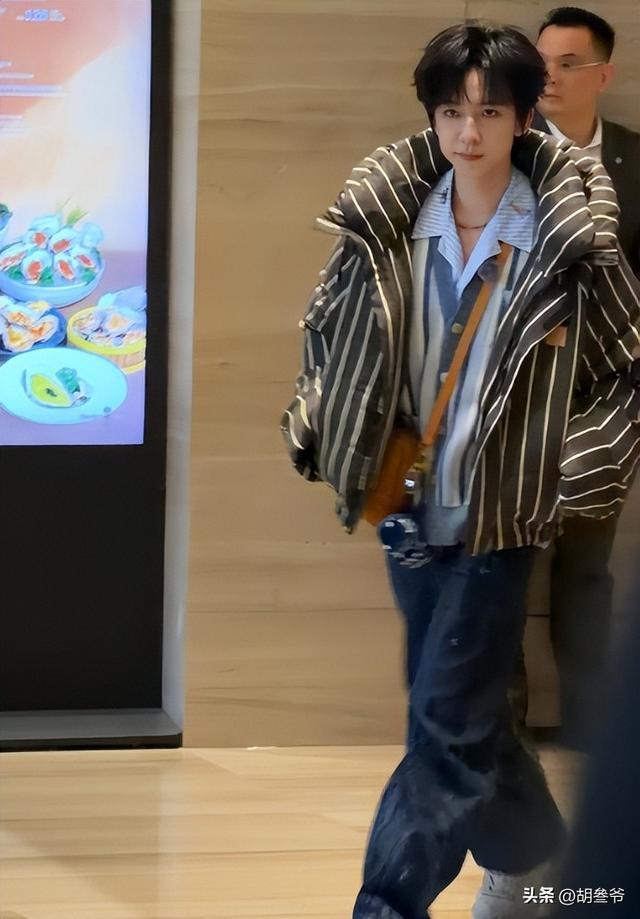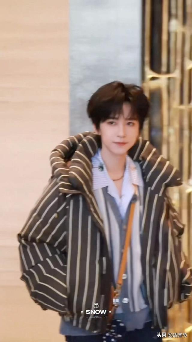 蓝棕相间的条纹把少年的清爽感拉满,随手一拍的生图里,巴掌大的小脸五官精致,状态好到发光。