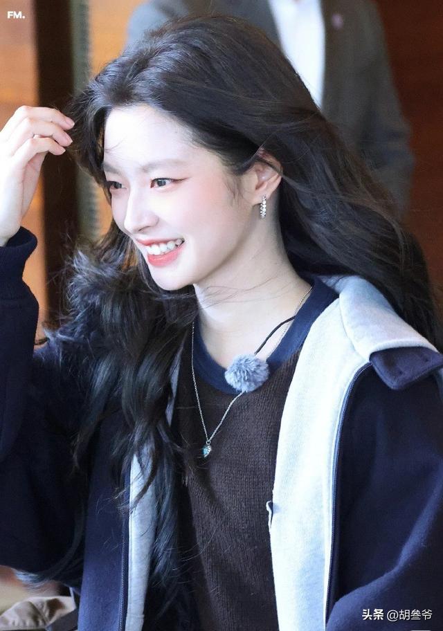 当天她穿了一件灰色长款毛呢大衣,内搭白色针织衫,领口处还特意露出一点白衬衫的边,简单的灰白配色,层次感却拉满。