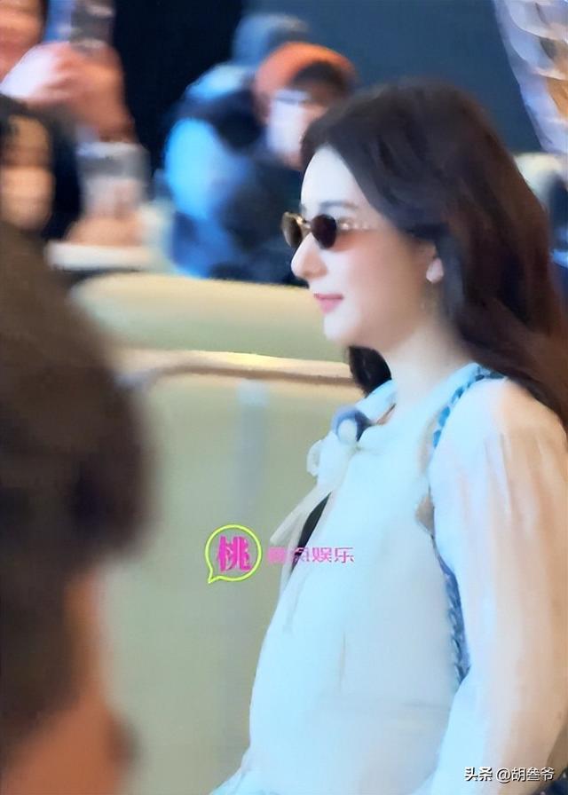 当天她穿了一件白色小香风上衣,领口的蝴蝶结点缀得恰到好处。