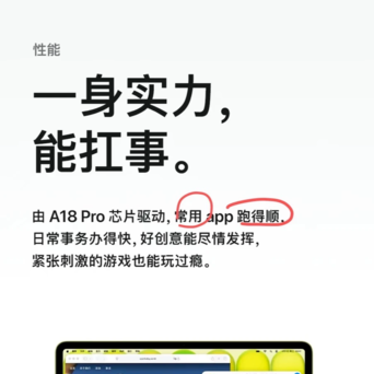 还有那句“常用app跑得顺”,感觉他深谙中华语言艺术,不常用的app跑得顺不顺呢??用A18 Pro芯片先筛选一下自己的软件列表,只敢用“常用”的,不要轻易用“不常用”的,还有那堆“回邮件、刷网页、打视频电话”,我家十年前的老电脑都能干这些事吧?现在拿出来当“天天高效引擎”吹了,合着这波宣发就是把“这电脑能开机、能上网、能打字”这种最基础的功能硬排版一次真的,苹果现在的文案团队是不是把“正确的废话”当成KPI在完成?