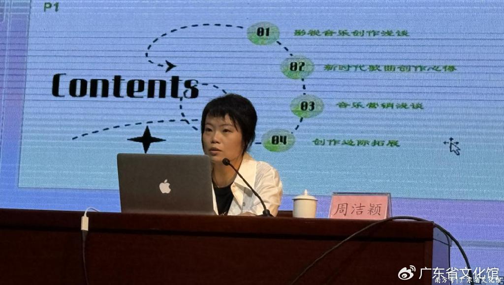 青年词作家、广东省音乐家协会理事、广州市音乐家协会副主席周洁颖讲授了《歌词创作漫谈》课程,涵盖选题策划(如地域文化、时代主题)、语言凝练技巧及情感共鸣点设计。以群文新时代歌曲作品为场景,分享了不同古风作品的歌词特点,并深入讲解歌词的文学性、韵律感与传播性,且为大家提供了从专业到产业转化的思路,助力学员写出“唱得响、传得开”的歌词作品。